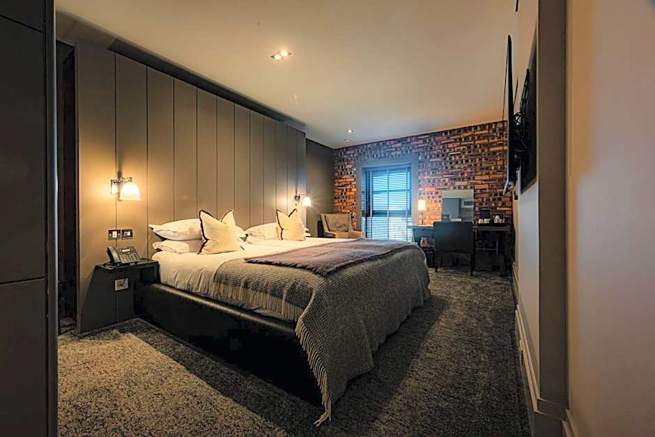 Our modern Classic double Room features a double bed with en-suite shower and 48" HDTV. In room amenities include Sky package with Sky Sports, crisp cotton linen and sumptuously soft bedding, rainfall shower, luxury toiletries, tea and coffee tray, bottled water, iron & ironing board, complimentary WiFi, hairdryer.